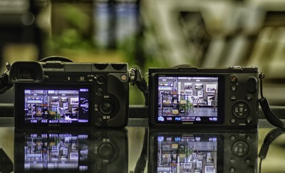 Sony NEX 7 and Samsung NX210 from back.